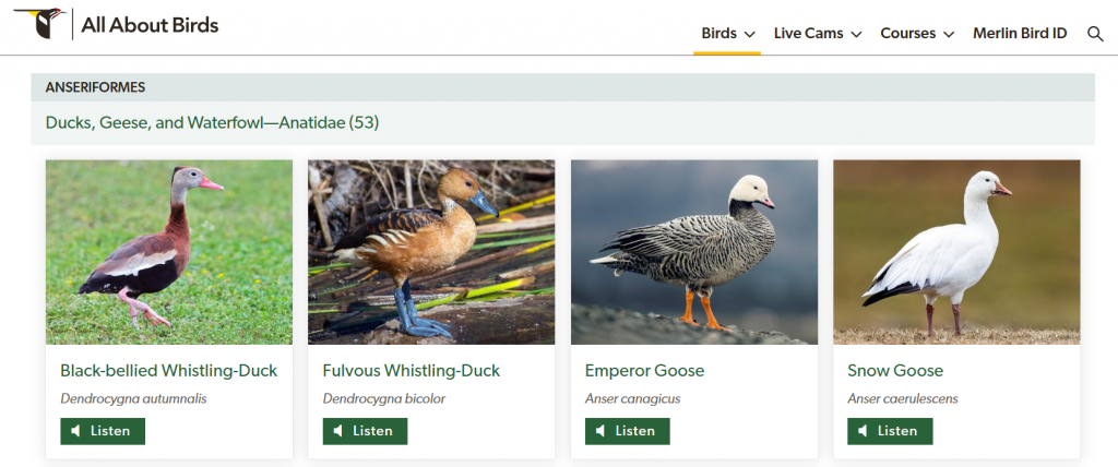 Use your ears. When you’re feeling more confident, focus on bird songs and calls, as they are extremely helpful to learn. Knowing them can instantly allow you to identify wetland birds even when you can’t see them. Download one of the popular apps like Merlin Bird ID, Audubon Bird Guide, or Sibley Birds that use stored audio files and AI to listen to the bird call and immediately tell you what the bird is. In addition to songs and calls, these apps provide access to maps, photos, and personal record keeping of your birding adventures.